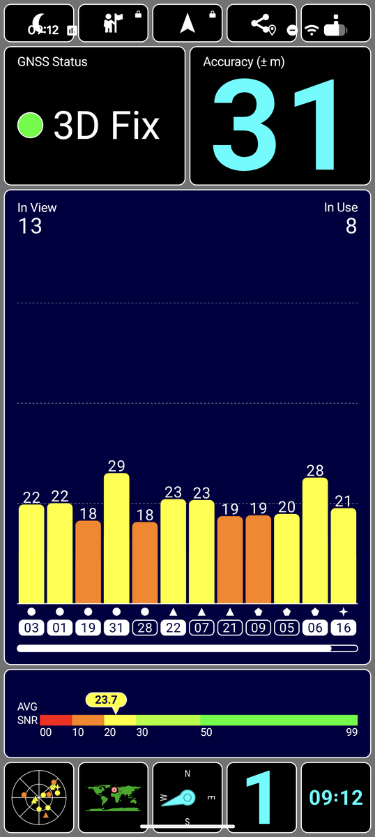 Pixel 10 Pro använder dual-band GNSS för positionering, vilket stöder alla globala satellitsystem. Satfixen tar relativt lång tid inomhus och är inte särskilt exakt. Utomhus är mottagningen å andra sidan snabb och mycket exakt.
