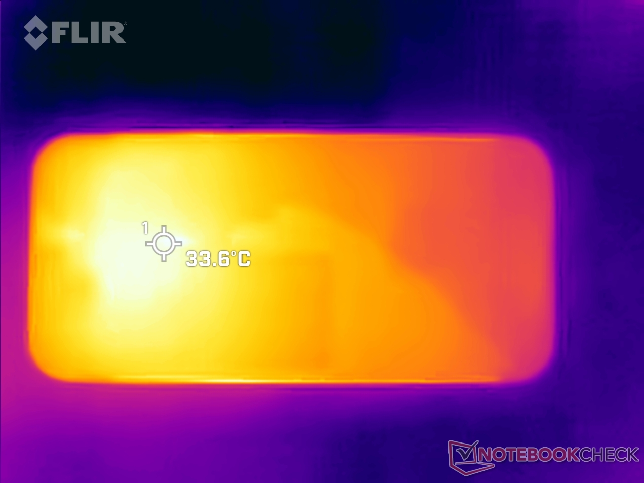 (+) Vid tomgångsbruk är medeltemperaturen för ovansidan 30.2 °C / 86 F, jämfört med enhetsgenomsnittet på 32.9 °C / ### class_avg_f### F.