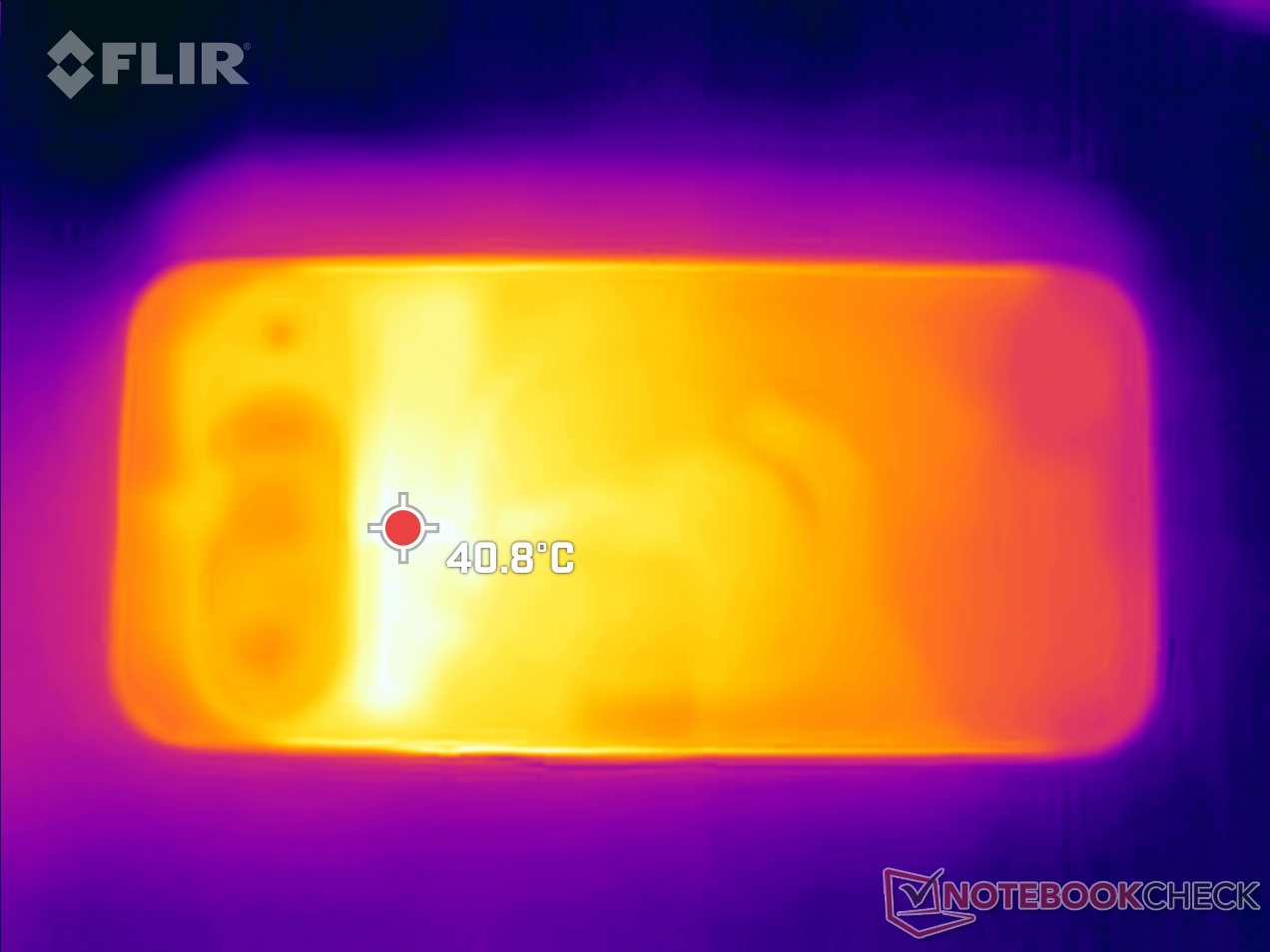 (±) Den maximala temperaturen på ovansidan är 40.6 °C / 105 F, jämfört med genomsnittet av 35.2 °C / 95 F , allt från 21.9 till 247 °C för klassen Smartphone.