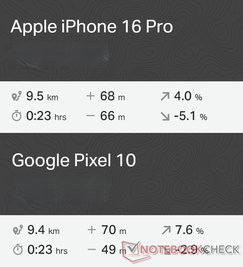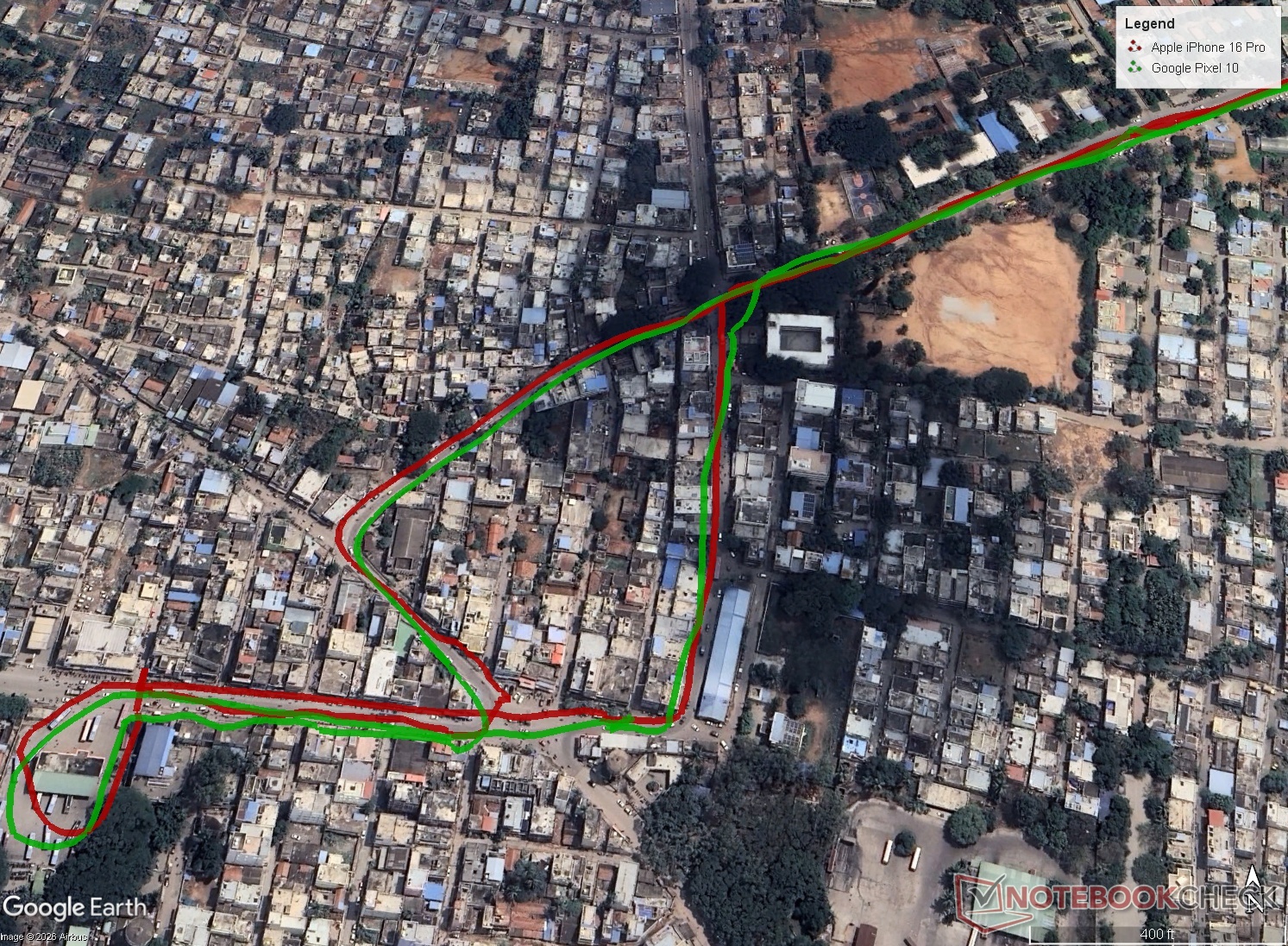 Pixel 10:s navigering är jämförbar med den hos Apple iPhone 16 Probåde på vägen och i ett tätt bostadsområde.