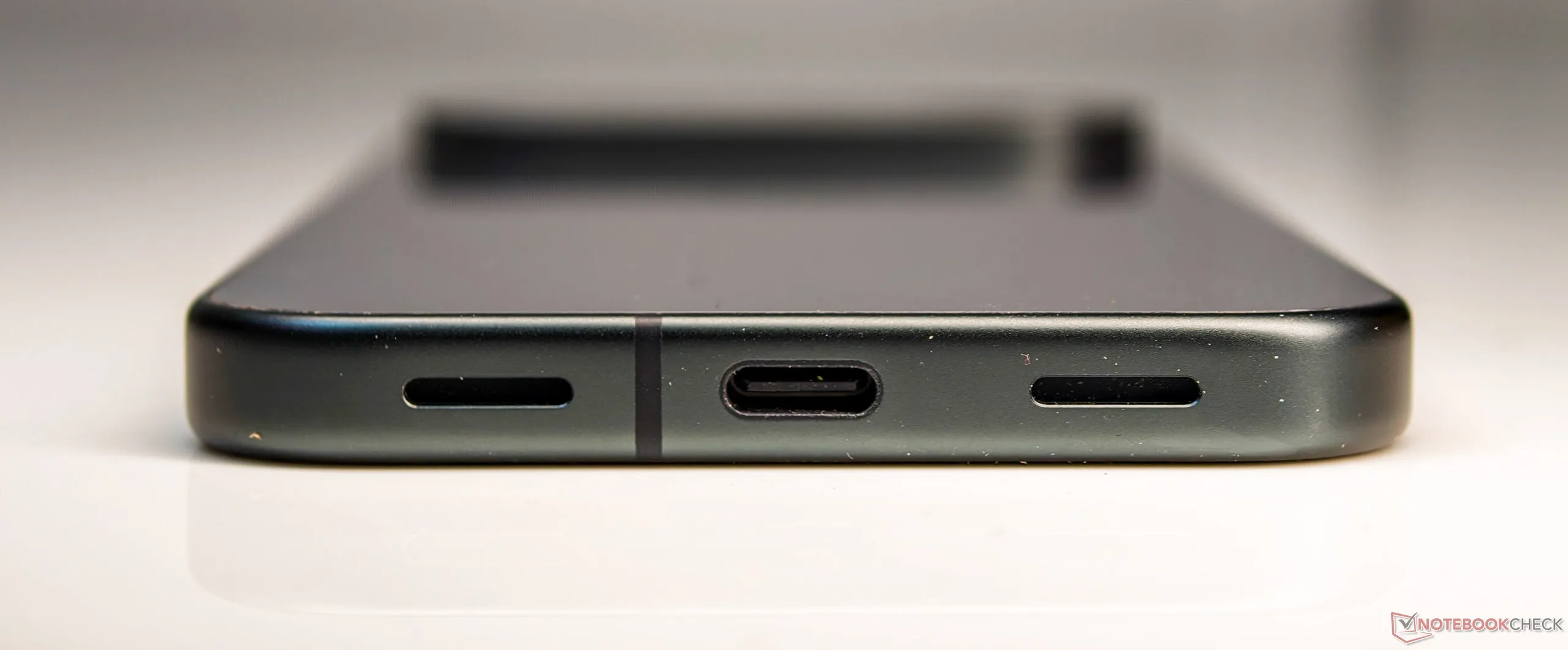 Högtalaren är placerad till höger om USB 3.2 Type-C-porten, så att den inte blockeras när telefonen hålls i liggande läge.