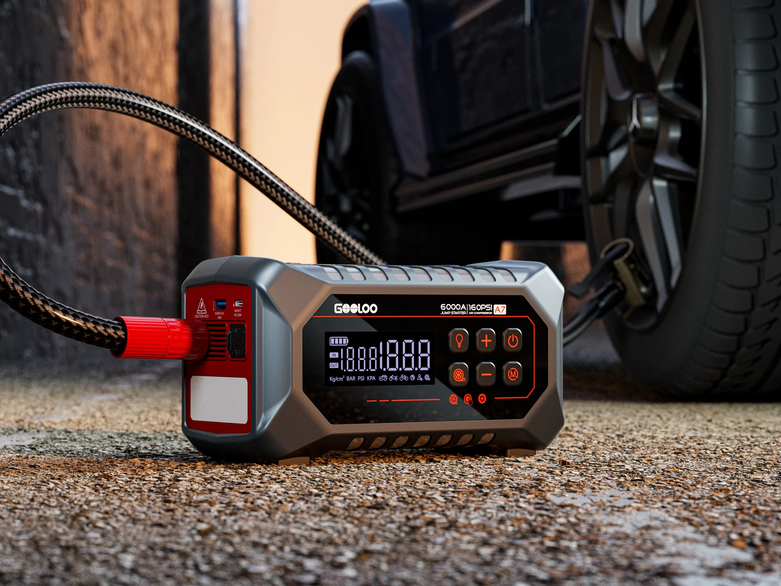 Gooloo, en tillverkare av biltillbehör, har lanserat sin senaste A7 bärbara starthjälp för bilar på den globala marknaden. Den bärbara gadgeten, som är utformad för att användas av friluftsentusiaster, förare och gör-det-själventusiaster, beskrivs som ett 3-i-1 multifunktionellt tillbehör. A7 har måtten 5,91 x 4,92 x 10,55 tum (150,1 x 124,9 x 267,9 mm) och väger cirka 14,06 kg (31 lbs).