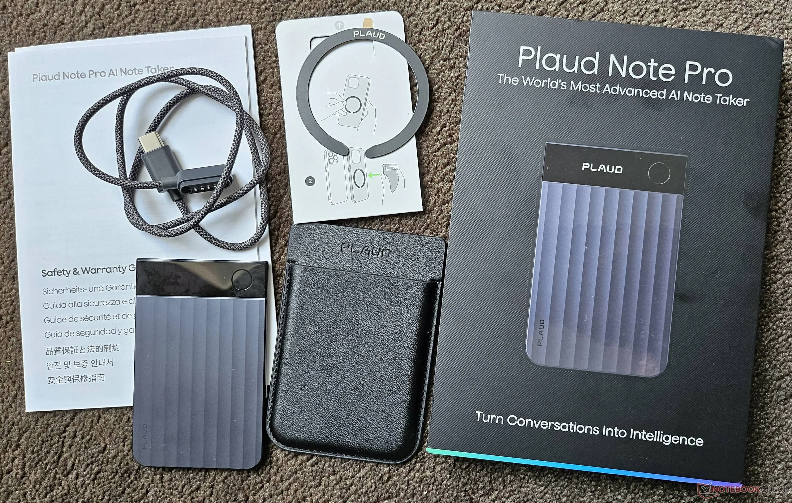 Det kompakta paketet innehåller allt du behöver: Plaud Note Pro, ett magnetiskt fodral i konstläder som omsluter enheten, en magnetisk USB-C-laddningskabel för anslutning till din smartphone, en snabbstartsguide och en självhäftande magnetring. När du använder fodralet förblir den magnetiska laddningsporten, den lilla skärmen och kontrollknappen åtkomliga. Om du snabbt vill ladda Plaud Note Pro via en dator för att spara på batteriet i din smartphone, måste du skaffa en adapter om datorn inte har en USB-C-port.