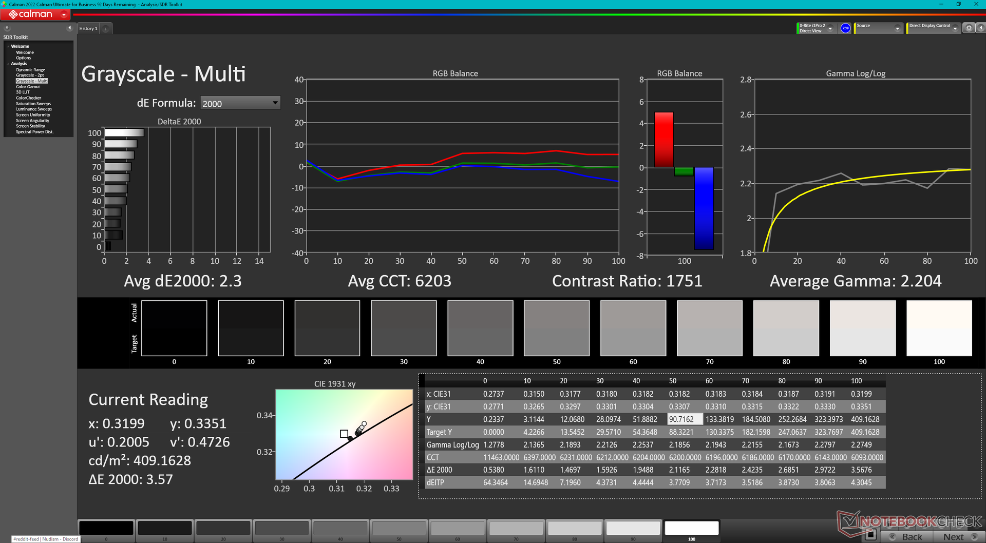 ΔE Greyscale Calman: 2.3 | ∀{0.09-98 Ø5}