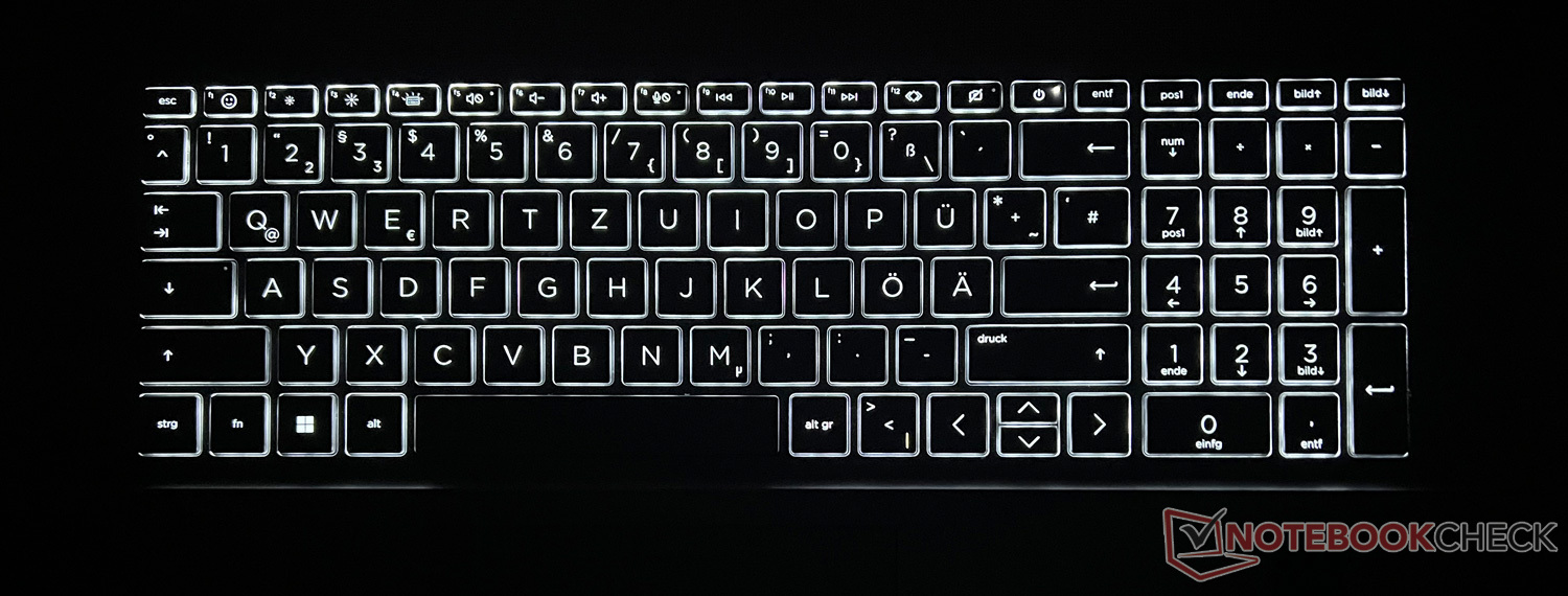 En 17,3-tums bildskärmsdiagonal innebär också att det finns mycket utrymme för tangentbordet. Bortsett från cirka 3 cm på kanterna använder HP detta utrymme för ett tillräckligt stort tangentbord tillsammans med en numpad på sidan.