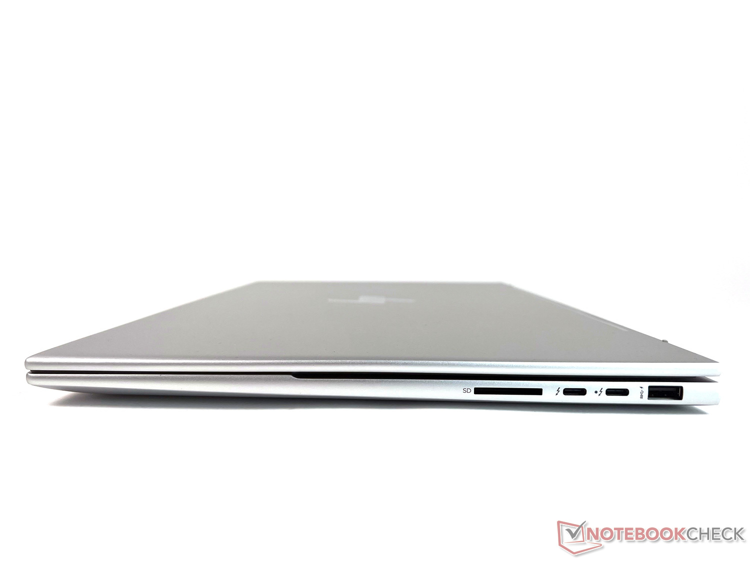 Envy 17 har en omfattande portutrustning, förutom en LAN-port. Det ingår två Thunderbolt 4-portar med USB 4 Type-C för dataöverföring upp till 40 Gbit/s, laddning och DisplayPort 1.4, med båda portarna placerade på höger sida. I vissa situationer skulle det vara mer önskvärt att fördela dem på båda sidorna. En av Thunderbolt-portarna används av den medföljande laddaren för att tillhandahålla ström.