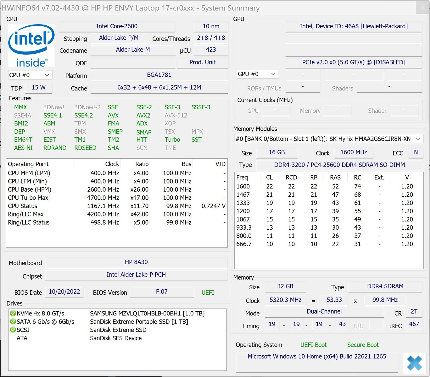 Under huven kan HP Envy 17-cr0079ng också erbjuda bra utrustning: HP använder den Intel Core i7-1255Uprocessorn av den 12:e generationen (Alder Lake) och kombinerar denna med en dedikerad Nvidia GeForce RTX 2050 Bärbar dator gPU för lägre mellanklass med 4 GB GDDR6, 32 GB DDR4-arbetsminne och en stor 1 TB stor SSD. Tillsammans med ett 55-Wh-batteri resulterar detta i en ~2,5 kg tung 17-tums bärbar dator som nu måste bevisa sitt värde i vårt test.