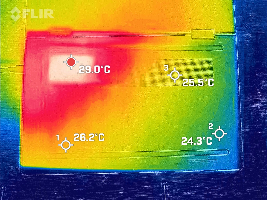 | Idle Upper Side * (°C) | 27.9 | 26.2 6% | 31.2 -12% | 31.2 -12% | 30.4 -9% | 25.4 9% | 24.8 11% |
