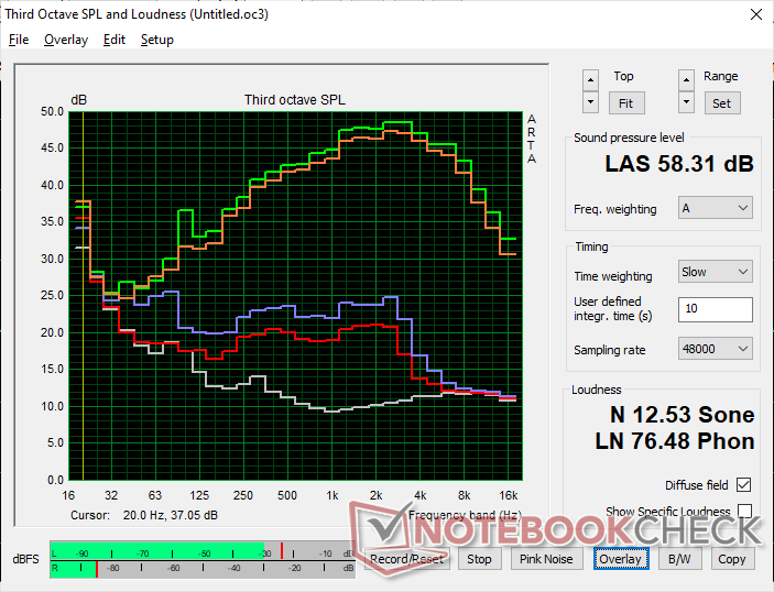 (±) | linjäriteten för det totala ljudet är genomsnittlig (15.3% skillnad mot median)