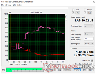 (±) | högtalarljudstyrkan är genomsnittlig men bra (80.6 dB)