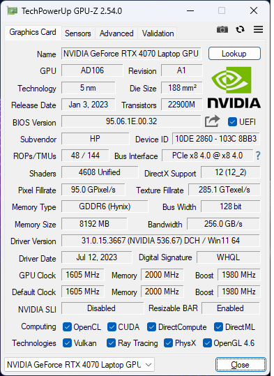 | 87.4 % v7 (old) | 07/2023 | HP Omen 16-wf000 i7-13700HX, GeForce RTX 4080 Laptop GPU | 2.4 kg | 23.6 mm | 16.10" | 2560x1440 | |
