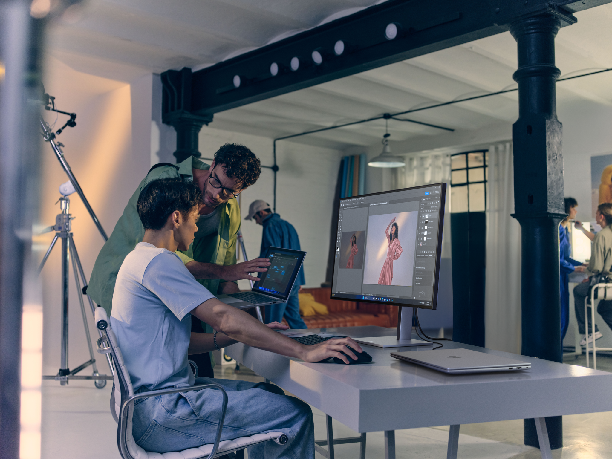 Fronten har något märkbara ramar och navigeringsknappen är placerad på baksidan. En KVM-switch ingår också för att möjliggöra sömlös enhetsväxling. Den levereras med en 31,5-tums 4K 16:9 IPS LCD-panel med en uppdateringsfrekvens på 120 Hz, 450 nits ljusstyrka, 5 ms responstid från grå till grå och 99,4 % DCI-P3 färgomfångstäckning.