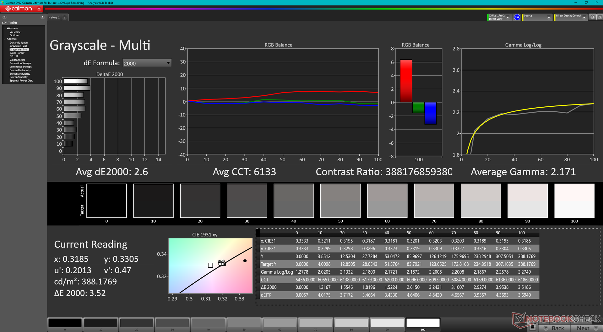 ΔE Greyscale Calman: 2.6 | ∀{0.09-98 Ø5}