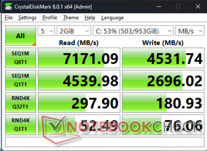 | HP Spectre x360 16 RTX 4050 GeForce RTX 4050 Laptop GPU, Ultra 7 155H, SK hynix PC801 HFS001TEJ9X101N | HP Spectre x360 16-aa0074ng Arc 8-Core, Ultra 7 155H, Kioxia XG8 KXG80ZNV1T02 | HP Spectre x360 2-in-1 16-f1075ng Iris Xe G7 96EUs, i7-12700H, SK Hynix PC711 1TB HFS001TDE9X073N | Honor MagicBook Pro 16 2024 GeForce RTX 4060 Laptop GPU, Ultra 7 155H, WD PC SN740 SDDPNQD-1T00 | MSI Prestige 16 B1MG-001US Arc 8-Core, Ultra 7 155H, Samsung PM9A1 MZVL22T0HBLB | LG Gram 2in1 16 16T90R - G.AA78G Iris Xe G7 96EUs, i7-1360P, Samsung PM9A1 MZVL21T0HCLR | |