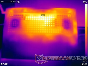 HP Victus 16 är en hyfsad bärbar speldator, men inte utan sina brister. Trots företagets bästa ansträngningar för att hålla värmen under kontroll med sina två fläktar och en labyrint av kylflänsar, hittar vi fortfarande höga värmeutsläpp.