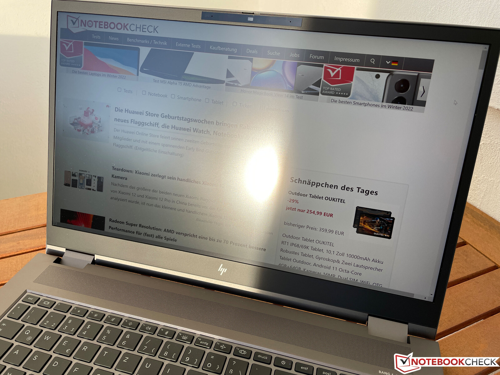 HP annonserar en genomsnittlig ljusstyrka på 550 cd/m² och vi kan bekräfta detta värde efter våra mätningar. Svartvärdet är också hyfsat på 0,33 cd/m² med tanke på den höga ljusstyrkan, vilket resulterar i ett mycket högt kontrastförhållande på mer än 1700:1. Du kan bara se mindre bakgrundsbelysningsblödningar längs kanterna även vid maximal ljusstyrka på en mörk bakgrund, men de är inget problem i praktiken. Det finns ingen PWM, bara svarstiderna är ganska långsamma, vilket resulterar i synlig ghosting.