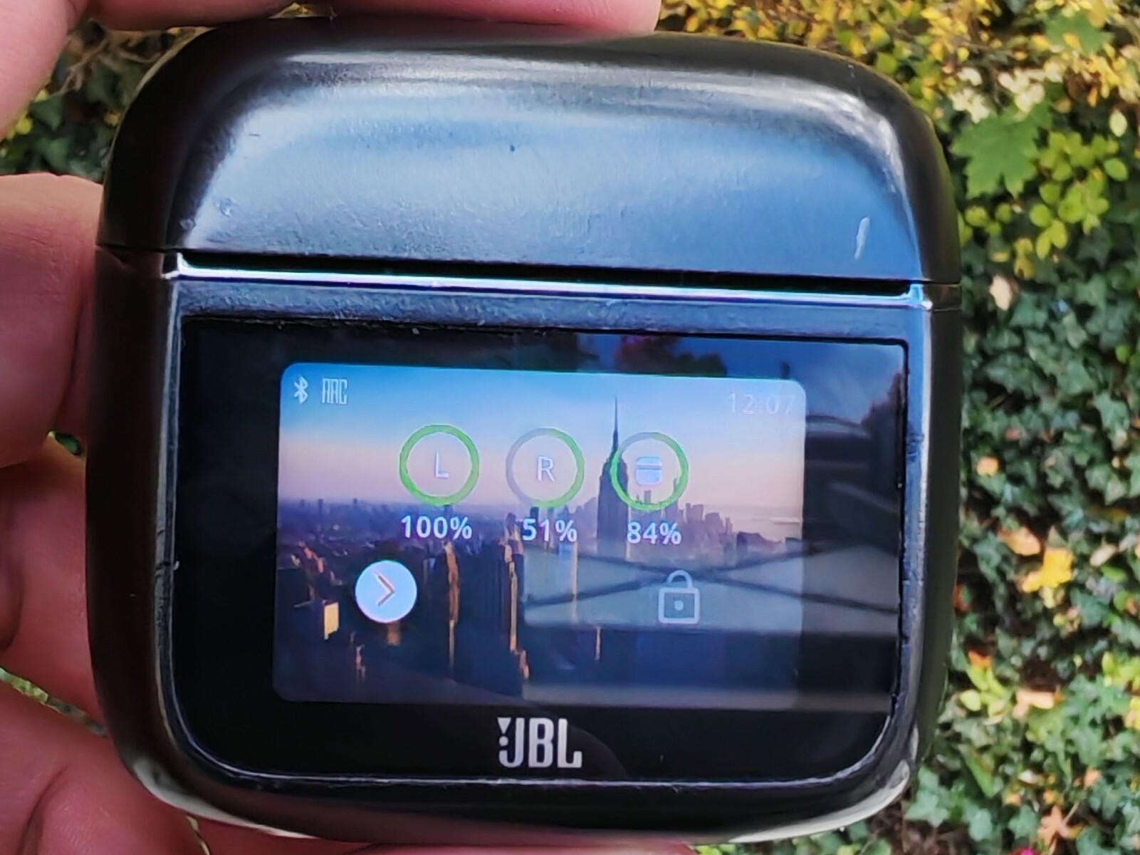 Det som skiljer JBL Tour Pro 3 från många andra in-ear-hörlurar är laddningsfodralet med inbyggd pekskärm. Skärmen har inte samma ljusstyrka eller klarhet som en modern AMOLED-panel, men dess relativt låga luminans begränsar användbarheten endast i sällsynta situationer. Olika inställningar kan justeras direkt på skärmen - till exempel ANC-kontroller och snabb åtkomst till equalizer-förinställningar. Användare kan också ställa in timers, välja bakgrundsbilder och till och med utlösa ett högt ljud från öronsnäckorna för att hjälpa till att lokalisera dem.