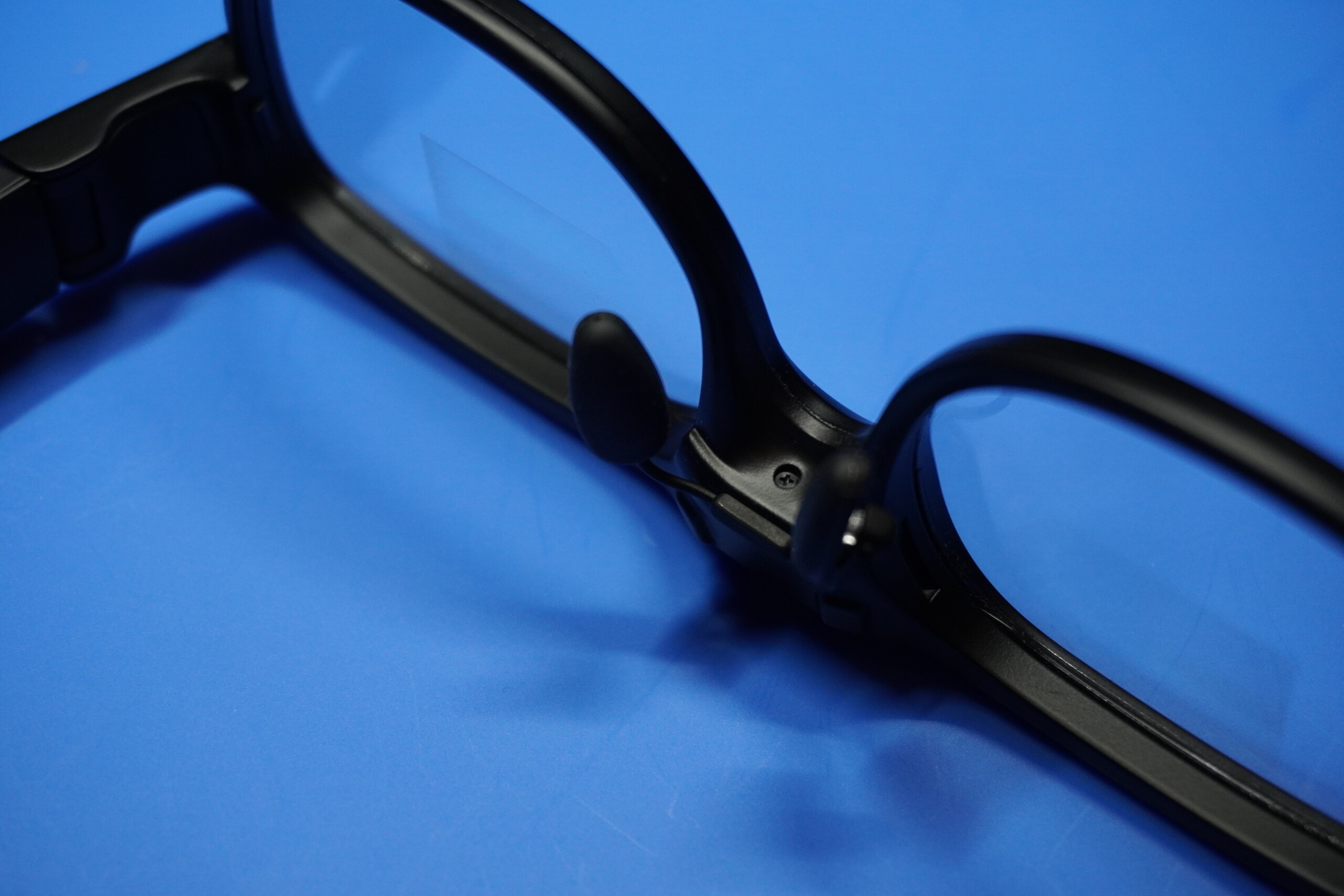 Leion Hey 2 gör ingen hemlighet av sin identitet; den känns utan tvekan som en pryl. Medan browline-designen försöker efterlikna traditionella glasögon, är hårdvarans natur uppenbar. Dessutom är näsbryggans kuddar riktade alldeles för långt ut ur lådan och kräver manuell justering för att uppnå en användbar passform. Ett av de mest anmärkningsvärda visuella elementen är ljusdiffraktionsfilmen på linserna, som skapar en synlig effekt där användarens ögon verkar glöda för alla i närheten. Medan magnesium-litiumramen känns avancerad är plasten på armarna en besvikelse och visar tecken på missfärgning efter minimal användning, sannolikt på grund av att enheten värms upp under drift.