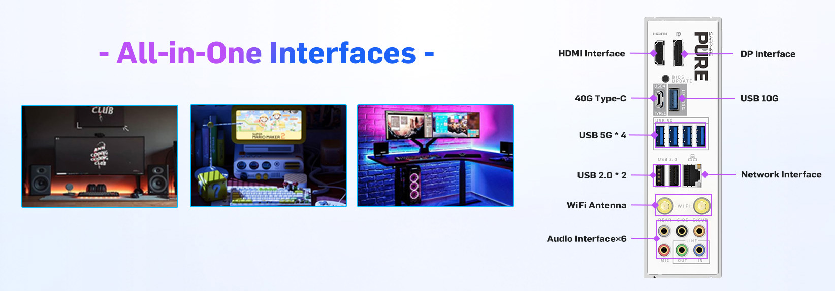 SAPPHIRE har även tagit fram en avancerad anslutningskonfiguration där användaren inte behöver tänka på ultrasnabba nätverk och mångsidiga portar. Kortet har WiFi 7, Bluetooth 5.4 och Realtek 5Gb Ethernet, medan USB 4.0 Type-C-porten hanterar 40 Gbps bandbredd, DisplayPort Alt Mode och 15W Power Delivery. Det ger en enorm mängd I/O, vilket tidigare generationers moderkort i X570-serien inte kunde hantera.