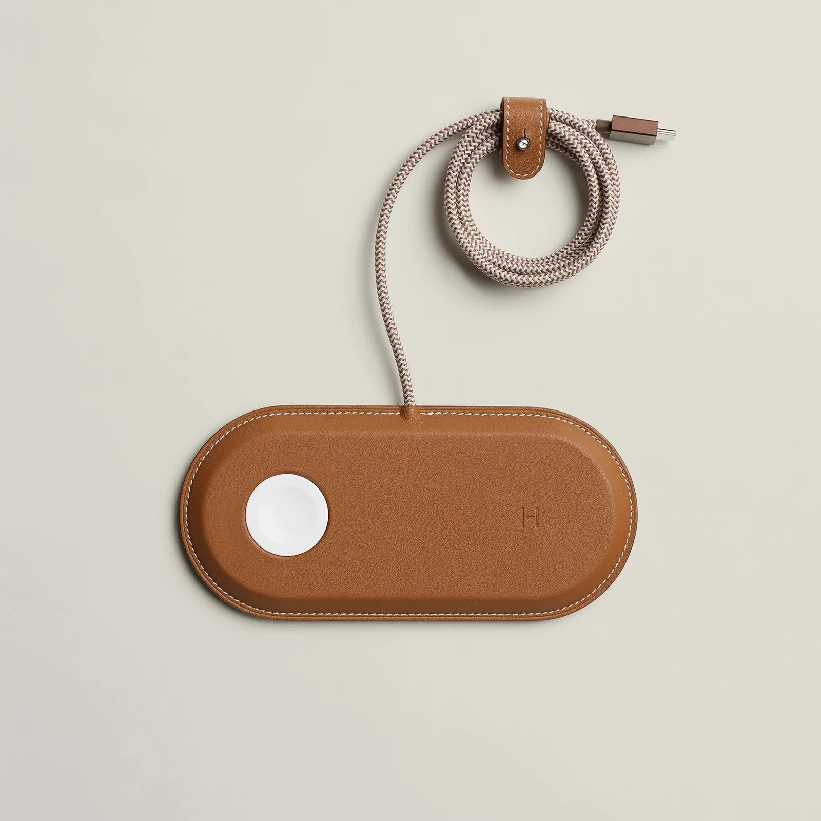 Den mest iögonfallande accessoaren är en MagSafe-laddare helt klädd i läder. Den vänstra laddplattan är utformad för att rymma en Apple Watch, medan den högra laddplattan erbjuder högre effekt för snabbare laddning av iPhone. Kabeln är helt integrerad, vilket innebär att den inte enkelt kan bytas ut om den blir defekt. Enheten levereras inte heller med en USB-C-adapter utan kräver en som kan leverera minst 20 watt