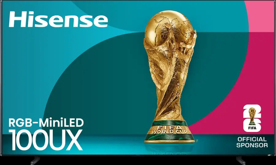 Hisense 100UX använder RGB-Mini LED-teknik som styr röda, gröna och blå lokala dimningszoner för mer exakta färger och högre maximal ljusstyrka. Den uppnår en ljusstyrka på upp till 8 000 nits och återger 100 % av BT.2020-färgrymden. Panelen har en inbyggd uppdateringsfrekvens på 165 Hz, MEMC med låg latens och stöd för alla HDR-format, inklusive Dolby Vision IQ, HDR10+ och Filmmaker Mode. Hi-View AI Engine X (även den baserad på MediaTek Pentonic 800 SoC) bearbetar bild och ljud. Ljudsystemet är 4.1.2-kanals och smarta funktioner är inbyggda med Google TV. Butikspriset är 11 999 USD.