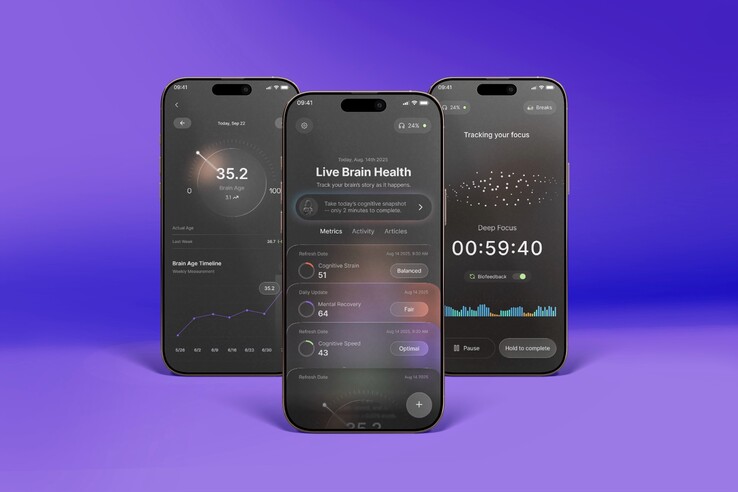 Detta gör att den tillhörande smartphone-appen bland annat kan visa hur mycket hjärnan anstränger sig, hur pigg hjärnan är på morgonen och när det är dags för lättare uppgifter eller intensivt mentalt arbete. "Brain Age" är utformad för att visa hur aktiviteter och vanor påverkar det kognitiva åldrandet. EEG med 12 kanaler sägs hjälpa användarna att uppnå i genomsnitt 33% mer "fokustid"