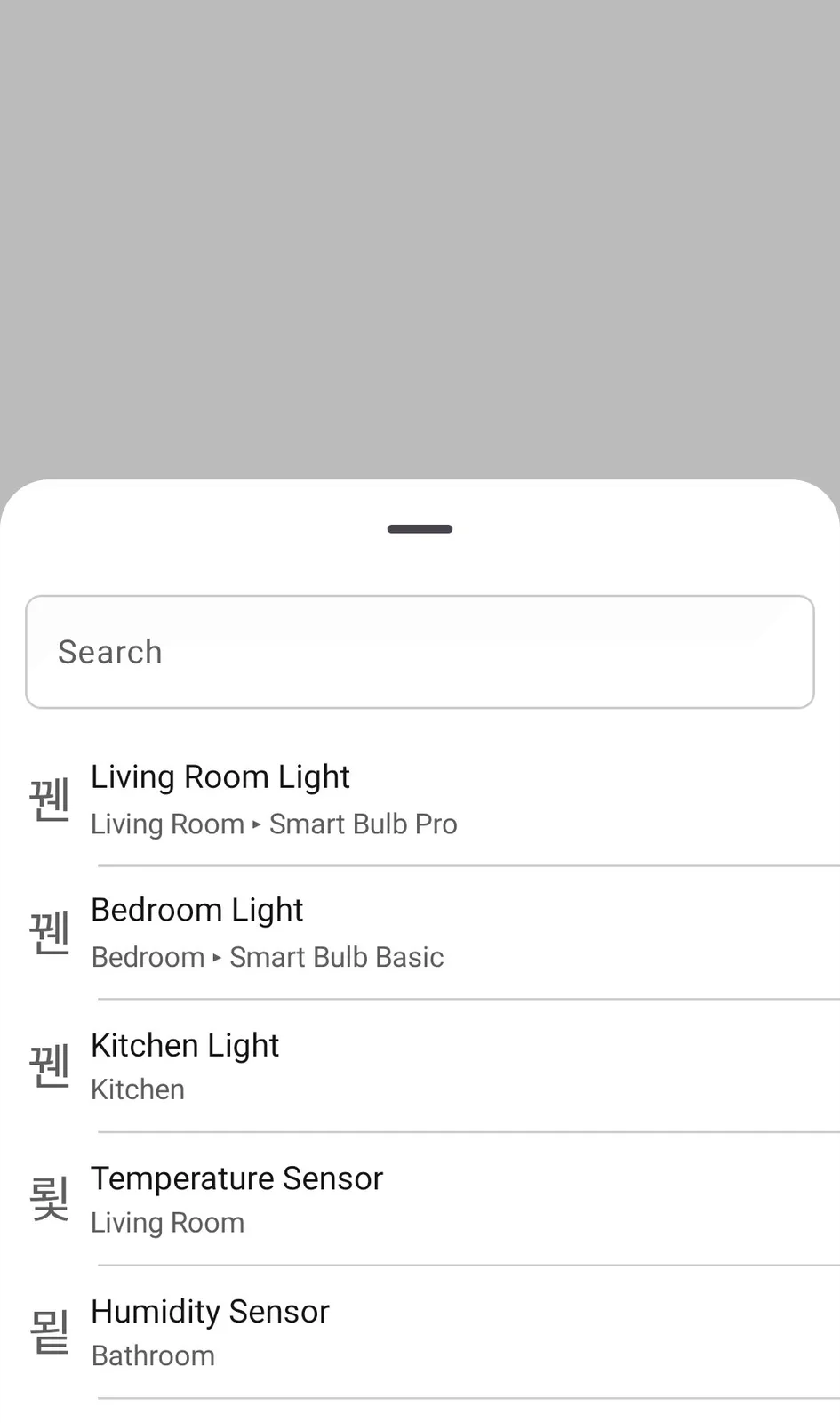 Home Assistant har också lagt till en ny enhetsväljare i sin Android app med version 2026.1 (se skärmdump nedan). Återigen är denna funktionalitet redan tillgänglig för iOS-användare, som anländer i version 2026.1. Detta har lagt till nya filter för ID, namn och område för att förbättra användarupplevelsen.