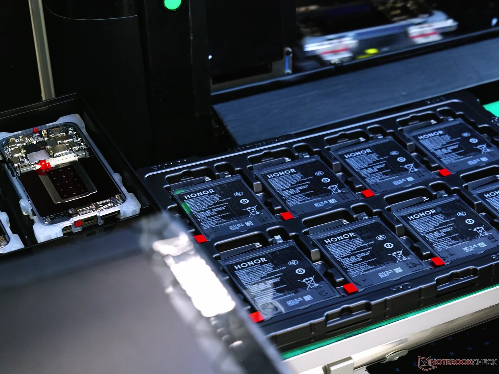 Under en exklusiv fabriksrundtur på Honor fanns det mer att se än bara de vanliga marknadsföringspresentationerna. Vi fick en imponerande inblick i tillverkningsprocessen och testprocedurerna inne i de moderna fabrikshallarna i det kinesiska tekniknavet i Shenzhen, och vi fick till och med ta med en kamera. Nedan följer några skärmdumpar från en video som har publicerats på Notebookcheck's YouTube-kanal. Eftersom batterierna som visas är de vanliga encelliga varianterna kommer kapaciteten hos de europeiska Honor Magic8-modellerna att vara begränsad till 6 270 mAh på grund av särskilda regleringarmedan konkurrenter som t.ex OnePlus 15 redan har uppgraderat till dubbelcelliga batterier.