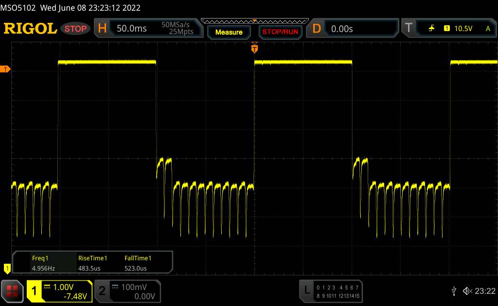 Medan Magic4 Pro lider av skärmflimmer som alla andra OLED-skärmar, lovar Honor ett DC-dimningsläge med en frekvens på 1920 Hz för märkbart minskad ögonbelastning. I våra mätningar manifesteras detta som en jämn cykel med en konsekvent frekvens som matchar uppdateringsfrekvensen.