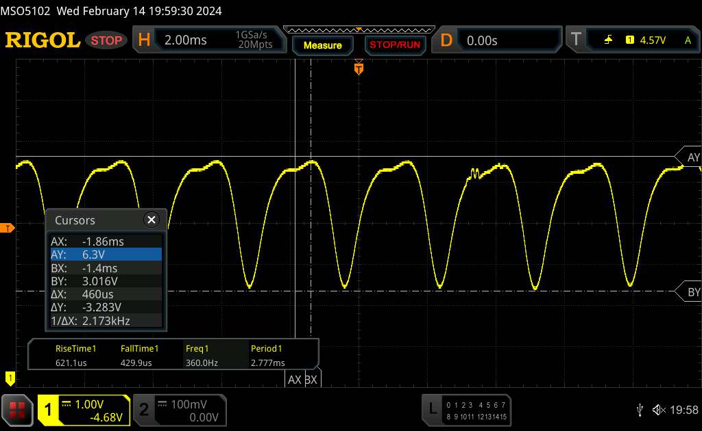 (+) | toppar är linjära (3.2% delta till föregående frekvens)