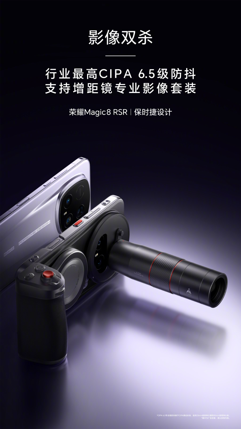 Enligt ett Weibo-inlägg från Honor har Magic 8 RSR Porsche Design en branschledande CIPA (Camera & Imaging Products Association) bildstabilisering på 6,5. Som jämförelse kan nämnas Honor Magic 8 Pro har ett CIPA-betyg på 5,5. Genom att kombinera denna funktion med fotograferingskitet, som innehåller en telekonverter, säger Honor att användarna kommer att kunna ta hisnande bilder.
