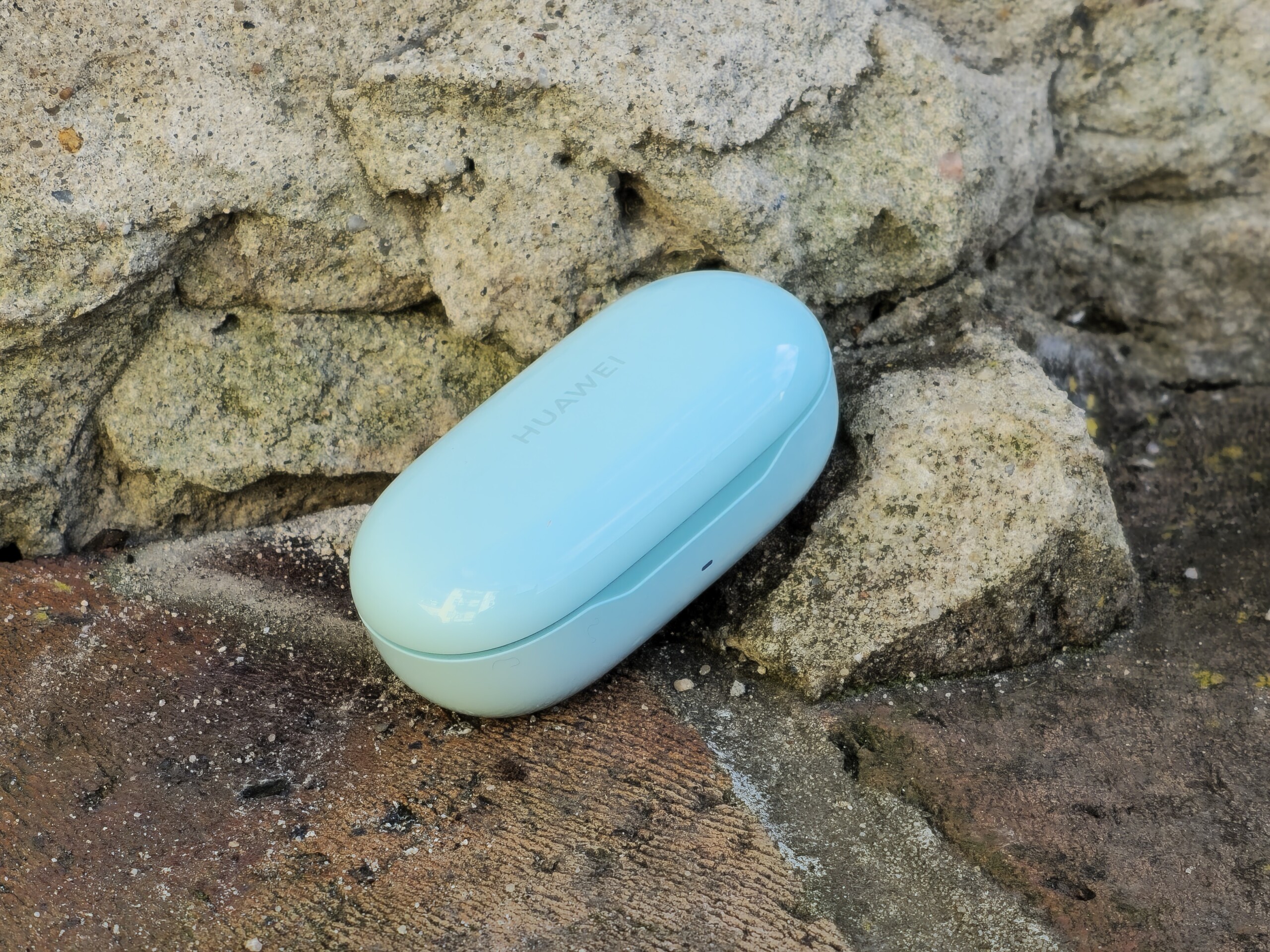 Färgvalet för FreeBuds SE är begränsat till en grönblå och en vit version av Huawei TWS. Designen är relativt känslig för fingeravtryck på grund av den högblanka finishen. Tillsammans med hörlurarna väger laddningsfodralet endast cirka 36 g, vilket är mycket lätt. Fodralet saknar alltså lite värde, och den plast som används känns också mindre värdefull än premium TWS - samma sak gäller för själva hörlurarna. Å andra sidan är hantverket mycket gediget och fodralet stängs säkert med magneter. Locket på vårt testexemplar har lite spel och vinglar därför lite.