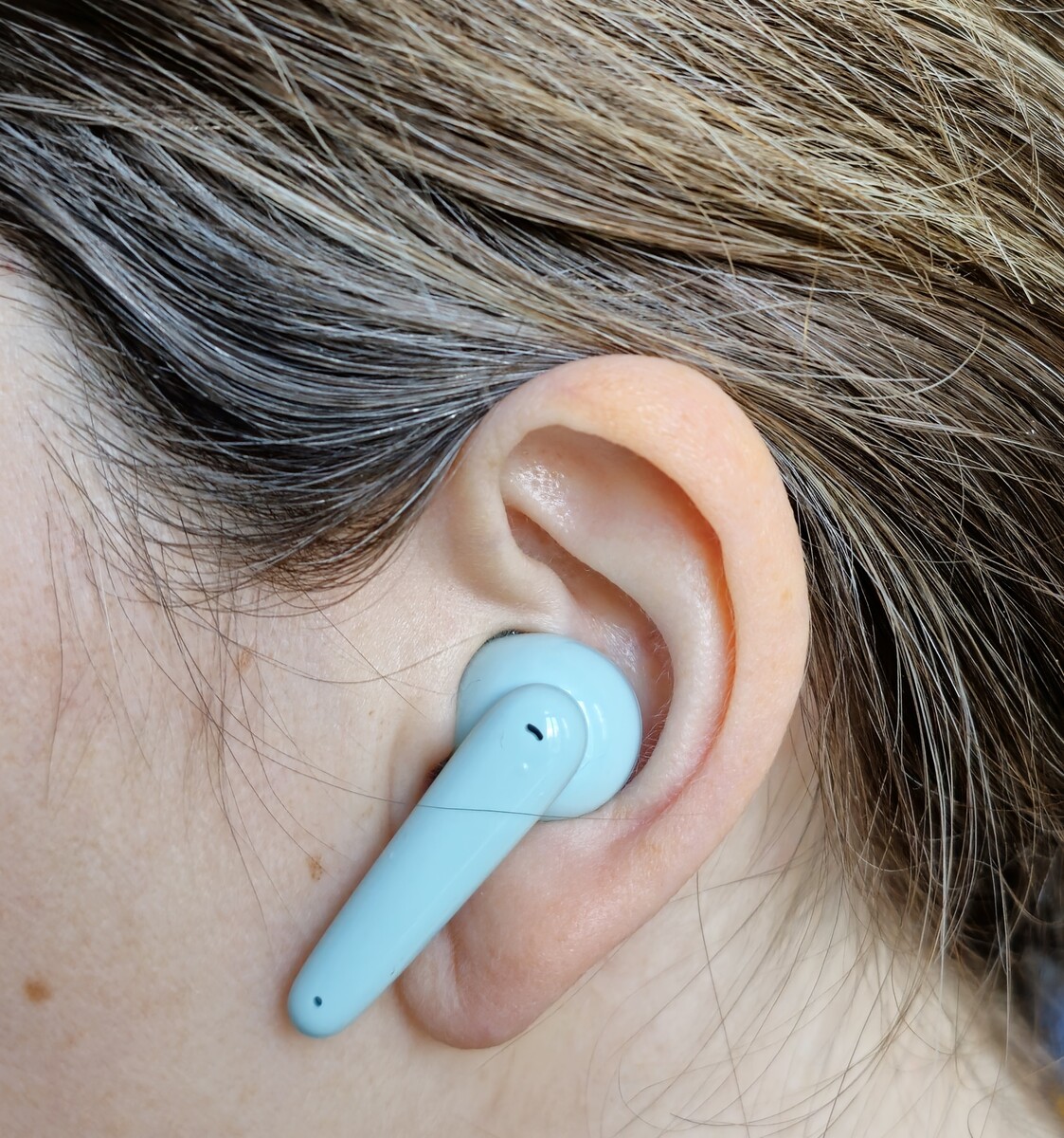 Vi tyckte att FreeBuds SE var bekväma att bära, och in-ears håller också tillräckligt bra för normal vardaglig användning. Huawei kallar designen av in-ears för Half-in-Ear-Design, vilket innebär att hörlurarna sätts in i den yttre hörselgången. Tre olika silikonfästen möjliggör individuell justering för bästa möjliga passform. Vid daglig användning sticker Huaweis hörlurar inte ut negativt på grund av sin låga vikt på cirka 5 gram, även vid längre användning.
