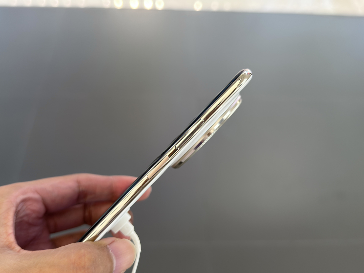 Huawei kompletterar också sina 1/1,3-tums primärkameror och 3x telefoto-kameror med en 10,7 MP framåtvänd kamera. Som bilderna nedan visar sitter denna framåtriktade kamera i ett hål bakom Mate 70 Airs stora skärm. Denna AMOLED-skärm mäter 7 tum diagonalt och har en upplösning på 2 760 x 1 320 pixlar med en uppdateringsfrekvens på 120 Hz och en maximal ljusstyrka på 4 000 nits.
