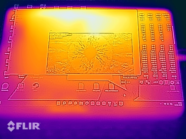 Det finns inga problem med yttemperaturen och surfplattan är ofta bara ljummen i vardagen. Maximal belastning resulterar bara i lite mer än 40 °C på vissa ställen, så det finns inga begränsningar.