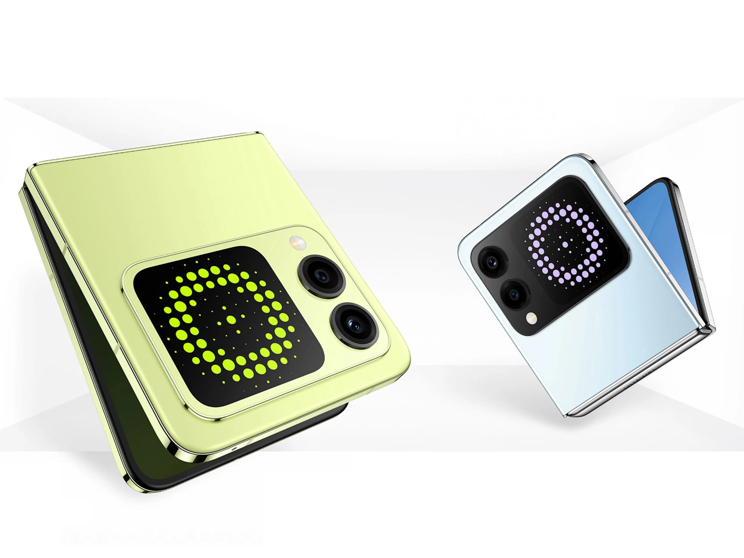 I hopfällt läge är Nova Flip S 15,12 mm (0,60 tum) tjock och 87,76 mm (3,46 tum) lång. Den inre skärmen på 6,94 tum har en upplösning på 2 690 x 1 136 pixlar, medan den yttre skärmen har en diagonal på 2,14 tum. Båda panelerna använder OLED-teknik. Telefonen har en 50 MP huvudkamera, en 8 MP ultravid kamera och en 32 MP framåtriktad kamera.