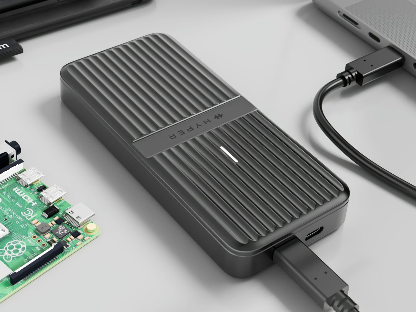 Till skillnad från den tidigare modellen har det nya HyperDrive Next USB4 M.2 PCIe-kabinettet (HD2500GL) nu stöd för hela 80 Gbps bandbredd för USB4. Det bör enkelt låsa upp hastighetspotentialen för PCIe 4.0 och 3.0 NVMe SSD-enheter, som Samsung 990 Pro, när de är anslutna till en USB4- eller Thunderbolt 5-maskin. Dessutom har den här modellen en extra USB-C-port för extern strömförsörjning, vilket innebär att den kan upprätthålla dessa topphastigheter under längre sessioner, till skillnad från de flesta bussdrivna USB4-kabinetten.