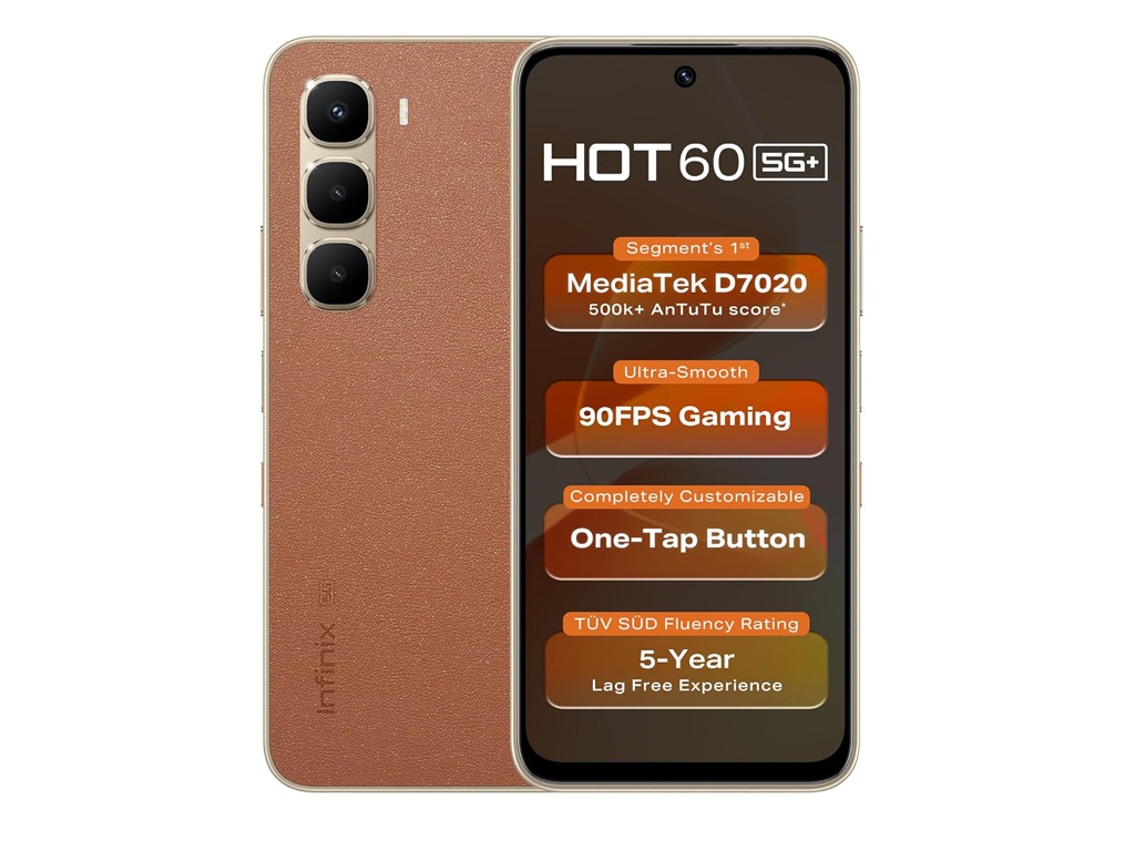 EN→SVThe Infinix Hot 60, launched in July 2025, is a budget-friendly 5G smartphone with a balance of modern features at an affordable price. It sports a 6.7-inch IPS LCD display with a 120Hz refresh rate, 720 × 1600 resolution, ~262 ppi density, and up to 700 nits brightness, making it suitable for media consumption. At 193g and 7.8mm thin, the phone feels sleek and lightweight. The device is powered by the MediaTek Dimensity 7020 (6nm) chipset with an octa-core CPU and IMG BXM-8-256 GPU. It comes with 6GB RAM and 128GB UFS storage, which can be expanded using a microSD card. It has a dual-camera setup with a 50MP main sensor, though Infinix has not specified details about the secondary lens. For video recording, it supports up to 1440p at 30fps. It also features an 8MP selfie camera with an LED flash, which is a nice touch for low-light shots. Durability is a highlight, with an IP64 rating for dust and splash resistance.