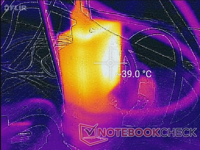 Yttemperaturen är märkbart varmare på den vänstra halvan av tangentbordet än på den högra, eftersom processorn är placerad direkt under den. Temperaturskillnaden kan vara så hög som 15 C mellan tangentbordets båda halvor när man kör mycket hög belastning under längre perioder. Tangenterna är tack och lov aldrig tillräckligt varma för att vara obekväma.