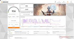 Vi observerade liknande resultat när vi körde Witcher 3 för att representera hög belastning eller spelbelastning. GPU- och kärntemperaturen skulle cykla mellan 750 och 950 MHz och 64 C respektive 70 C, medan de flesta andra bärbara datorer skulle köras med fasta klockfrekvenser och temperaturer. Bildfrekvensen vid spelande tenderar att cykla på Infinix-systemet som ett resultat av detta.