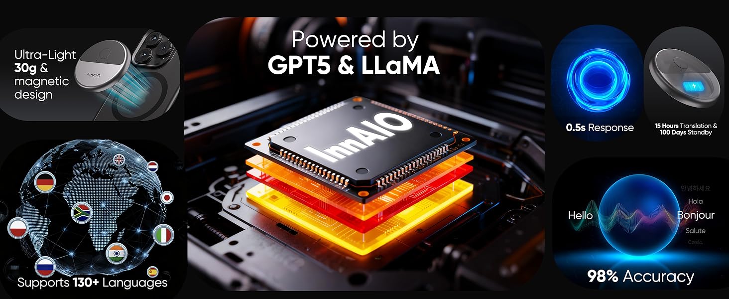 Per företaget drivs översättaren av GPT-5 och InnAIO:s språkmodell, och det finns stöd för över 130 språk. Användare kan också växla mellan dialekter, och InnAIO säger att enheten har en översättningshastighet på 0,5 sekunder och har en noggrannhet på 98%.
