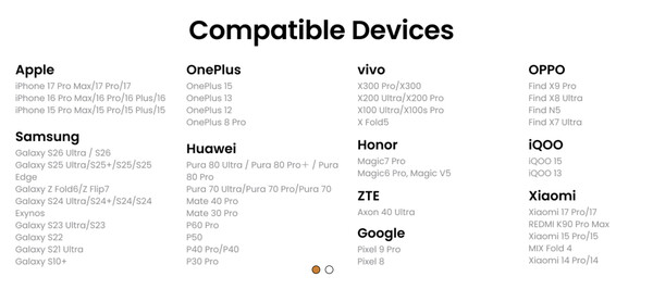 Insta360 marknadsför Snap med iPhones, men det nya tillbehöret är även kompatibelt med Android smartphones med USB Type-C-portar. Vänligen se bilden nedan för en fullständig lista över officiellt kompatibla enheter. Insta360 Snap kostar från $79,99 och stiger till $89,99 med en inbyggd lampa. Vänligen se Insta360s webbplats för mer information.
