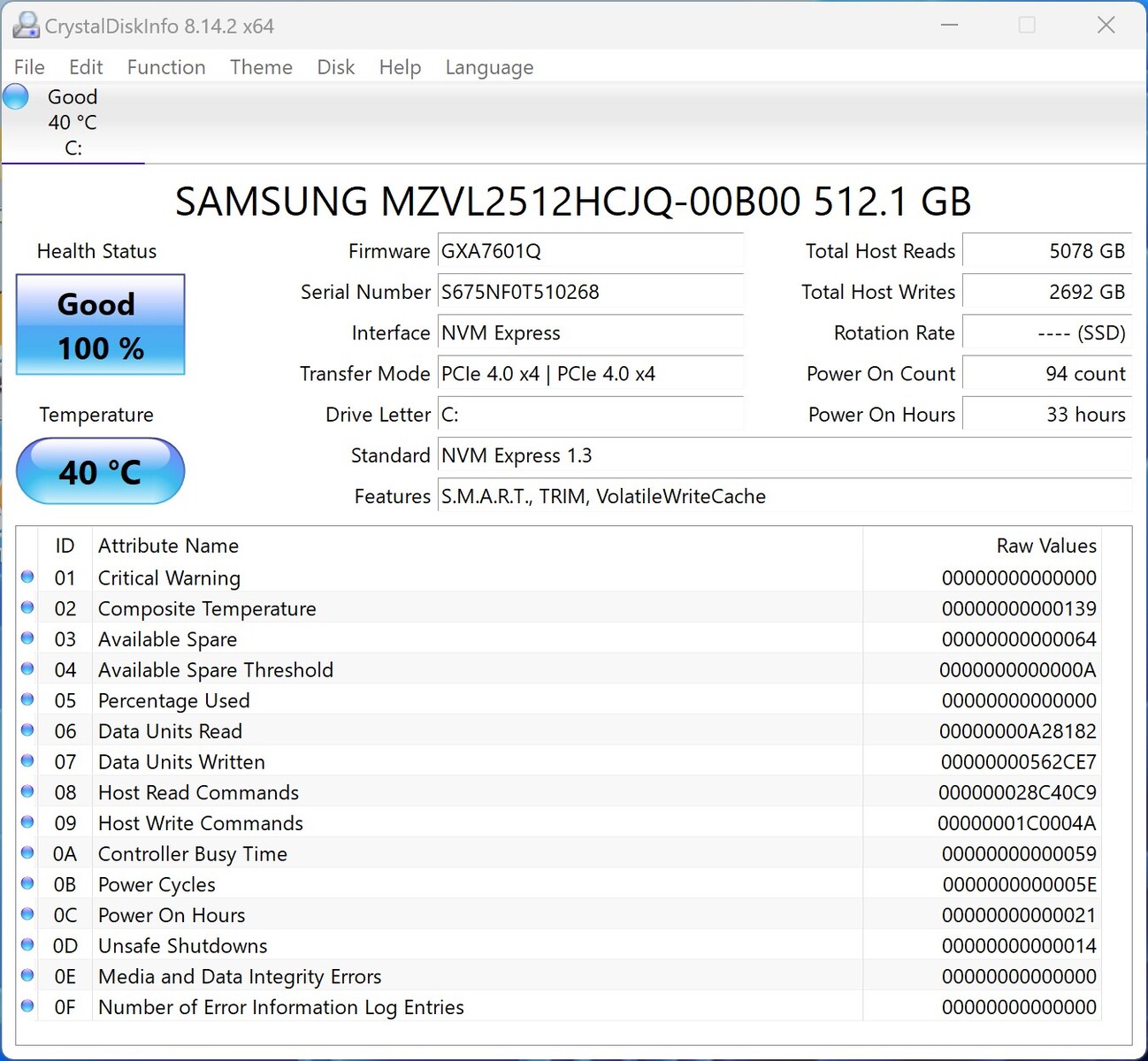Vårt testexemplar av Intel NUC 13 Pro Desk Edition Kit är utrustad med en 512-GB NVMe SSD från Samsung. En identisk modell kunde redan ses iIntel NUC 13 Pro Kit. Eftersom samma lagringsenhet användes noterade vi nästan identiska benchmarkresultat när det gäller prestanda. Vi noterade bara en skillnad när det gäller läshastigheter under kontinuerlig belastning. Här levererade Intel NUC 13 Pro Kit generellt bättre prestanda, även om Intel NUC 13 Pro Desk Edition Kit aldrig hade några problem med att hålla prestandanivåerna stabila. Intel NUC 13 Pro Desk Edition Kit kan utrustas med totalt två lagringsenheter. Det måste noteras att den andra platsen endast kan utrustas med en M.2 SSD 2242. Dessutom stöder den här anslutningen endast SATA-hastigheter, vilket du också måste komma ihåg.