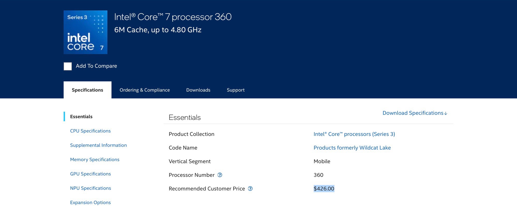 Enligt detta kommer en Intel Core 5 320 $340, medan Intel tar $426 för en Core 7 360. Dessa priser gäller för ett köp av 1 000 enheter; rabatter är troliga vid köp av högre kvantiteter. Chipen är därför förvånansvärt dyra, eftersom Intels prestandainriktade processorer för bärbara datorer fortfarande erbjöds till jämförbara priser för några år sedan. Intel anger inga priser för de snabbare "Panther Lake"-chipen