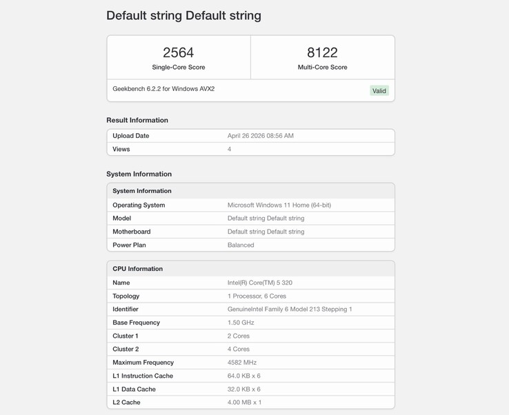 De första bärbara datorerna med Intel Core 5 320 har redan benchmarkats på Geekbench. Med ett single-thread resultat på 2.564 poäng och ett multi-core resultat på 8.122 poäng är chippet nästan dubbelt så snabbt som AMD:s billigare Ryzen 5 7520Umen också 11,1 procent långsammare än Apple MacBook Neo(589 dollar på Amazon). Intel Intel Core Ultra 5 325 är 36 procent mer kraftfull