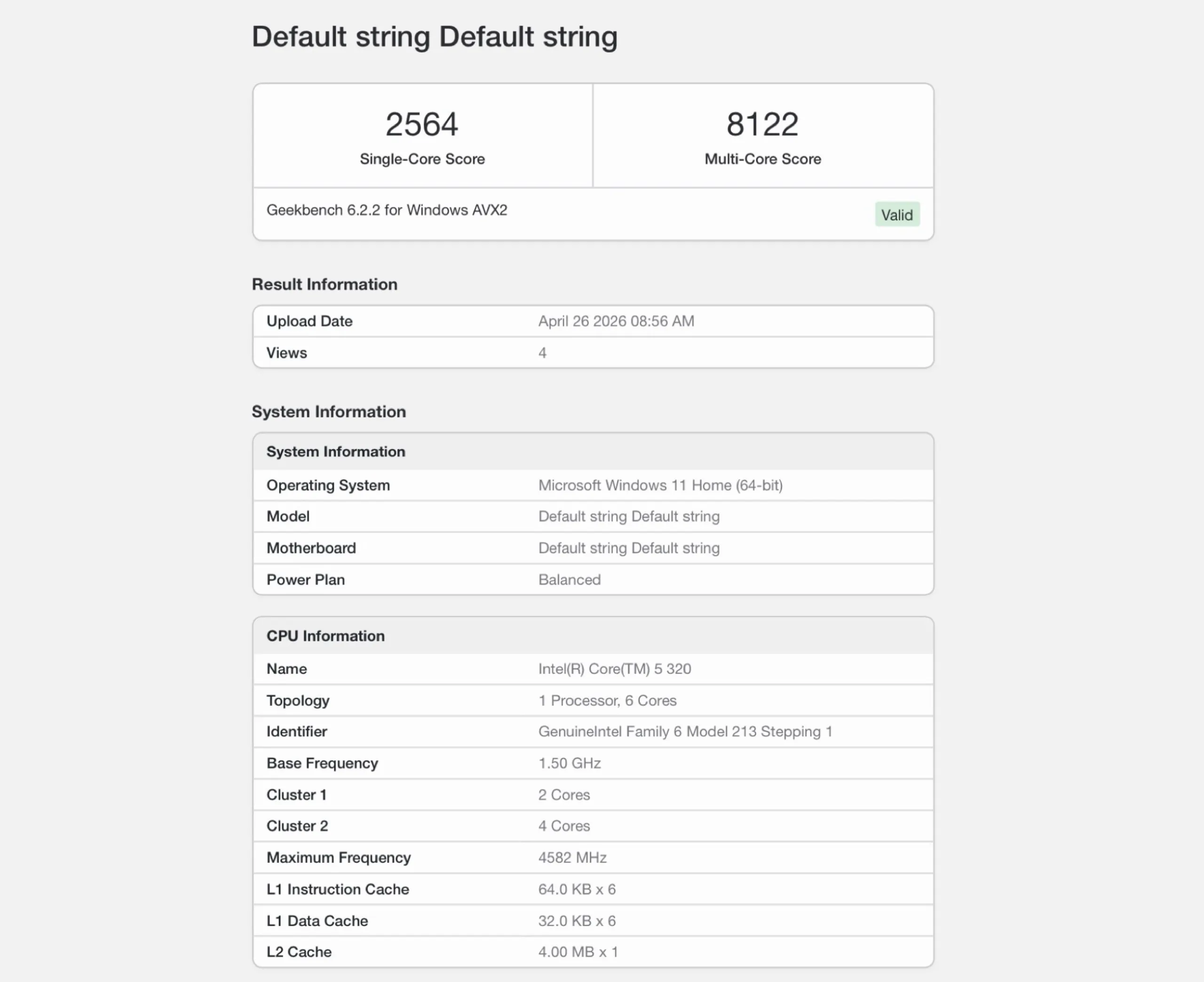 | Intel Core 5 320 | 2.564 | 8.122 |