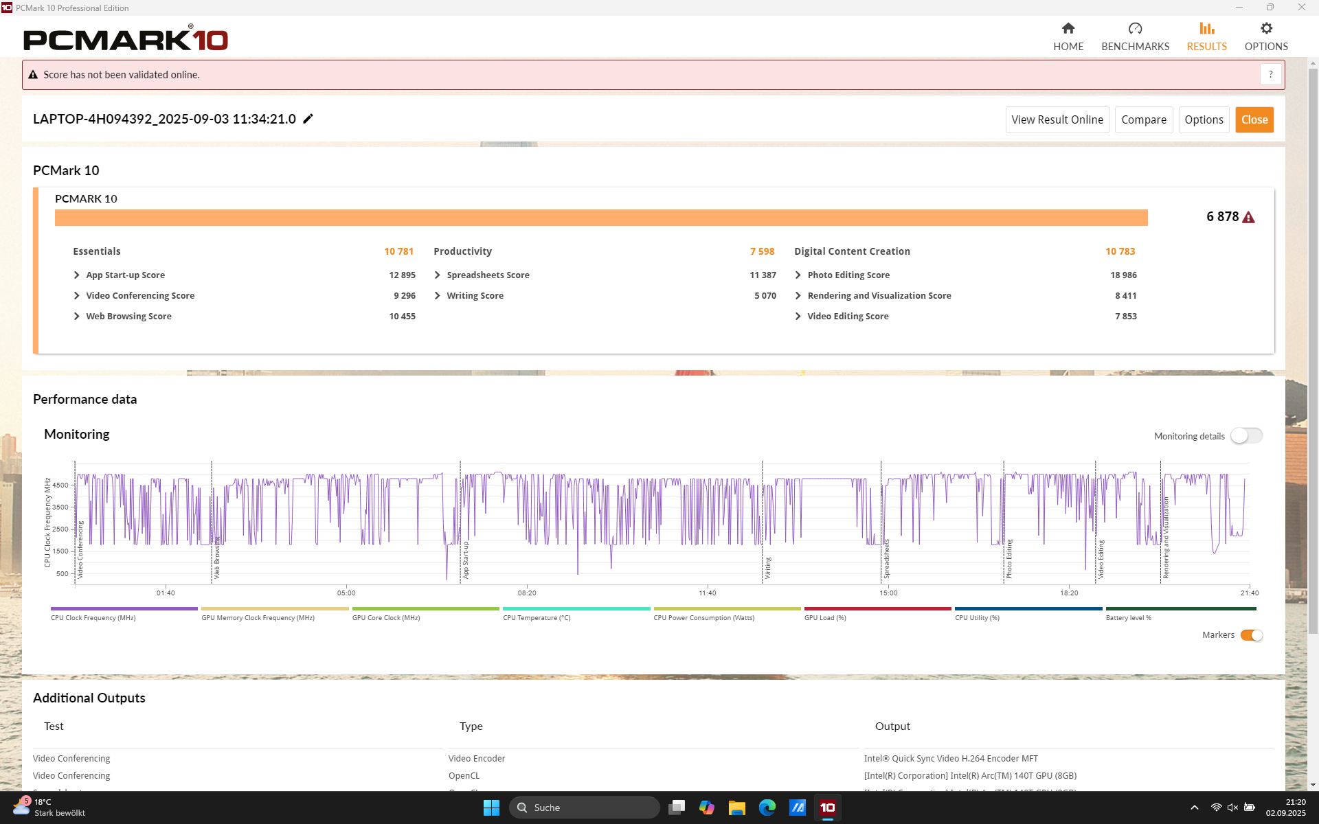 I Cinebench-loopen börjar processorn starkt med en mycket högre initial poäng än AMD-versionen. Tyvärr minskar prestandan stadigt tills den faktiskt sjunker under AMD ZenBook efter cirka 14 körningar. I korta bursts och enkärniga arbetsbelastningar tar Intel dock tydligt ledningen. Överlag ligger Intel-modellen steget före, mer tack vare den starka initiala prestandan än den långsiktigt hållbara prestandan.