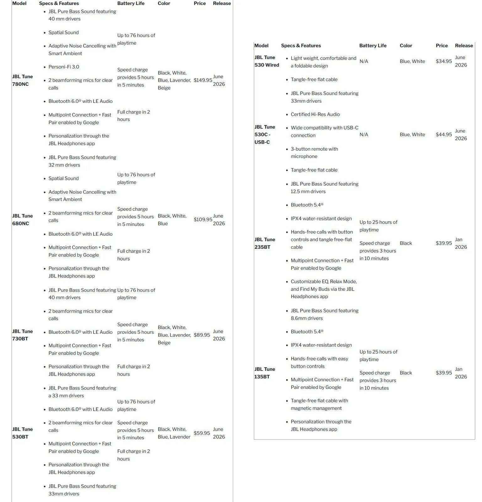 De trådbundna och trådlösa modellerna kostar från $34,95 till $149,95. Instegsmodellerna 135BT och 235BT kommer att finnas tillgängliga i januari 2026, medan resten kommer att finnas tillgängliga i juni 2026. Modellen 730BT tillkännagavs tidigare i november förra året i Japan och finns redan till försäljning där. Läsare kan leta efter de nya modellerna i JBL-butiken på Amazon US.