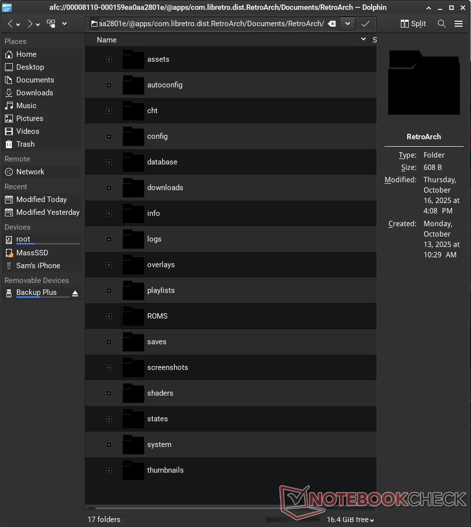 När jag försökte installera KDE (läs ovan) lämnade det kvar filhanteraren Dolphin på min enhet. Jag började använda Dolphin och föredrog den framför standardfilhanteraren för XFCE4 (Thunar). Dolphin innehöll en trevlig överraskning: den kunde upptäcka min iPhone när den var inkopplad. Detta gjorde det enkelt att överföra filer till och från min telefon eftersom filhanteraren gav full filåtkomst till iPhone. På grund av hur långt Apple:s filhantering har kommit på iOS, fanns det specifika filer för var och en av mina appar. Den övergripande processen är betydligt enklare än den var på Windows eftersom iTunes inte längre behövs.