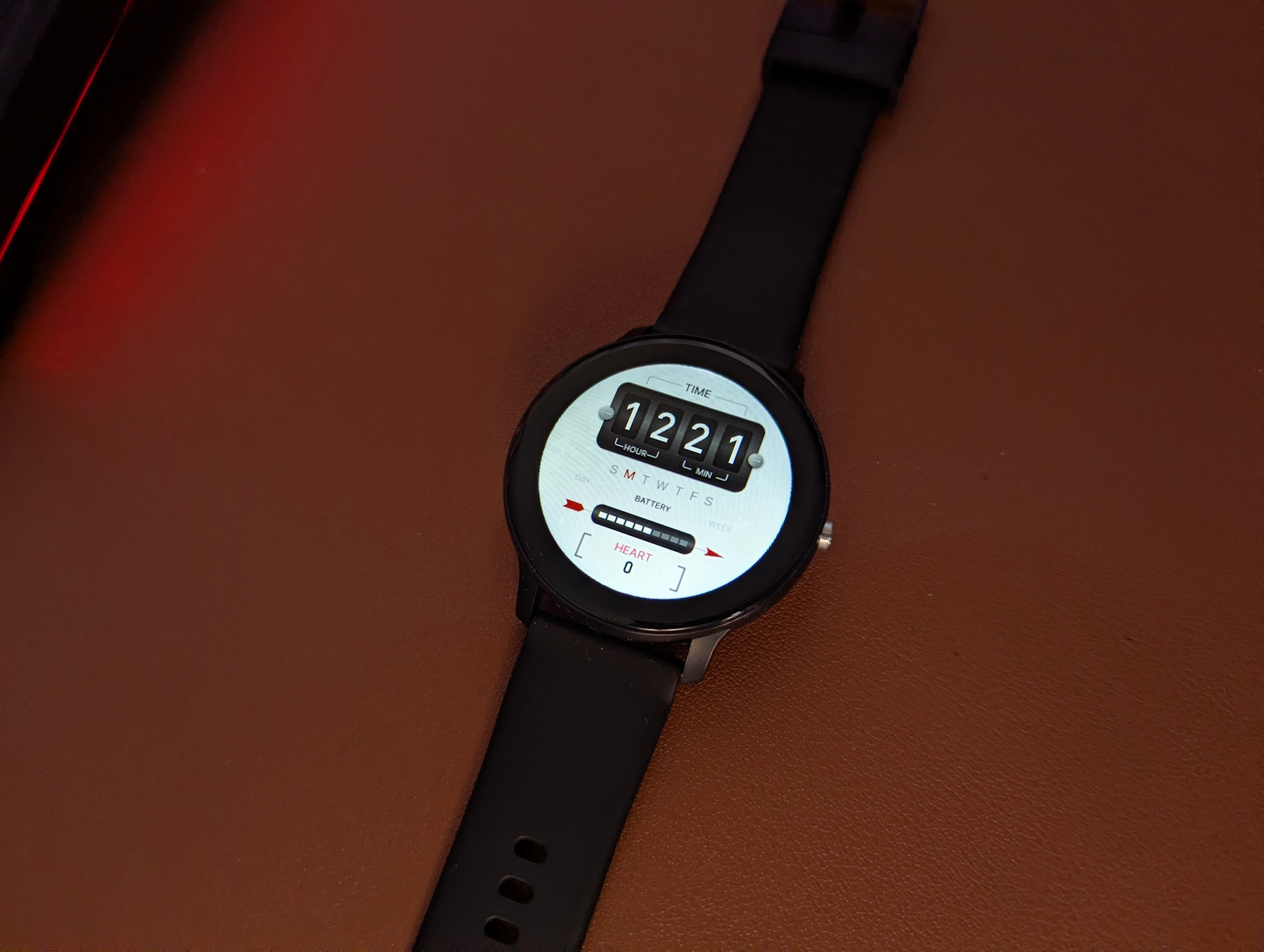 Fram till den punkten var saker och ting dock fortfarande okej. Det verkade som om jag hade hittat en prisvärd klocka med ett anständigt utseende, bra batteritid och enhetslarm. Urtavlorna var mycket begränsade och mestadels föga imponerande, men jag lyckades hitta en som jag gillade - den såg lite ut som en elmätare.